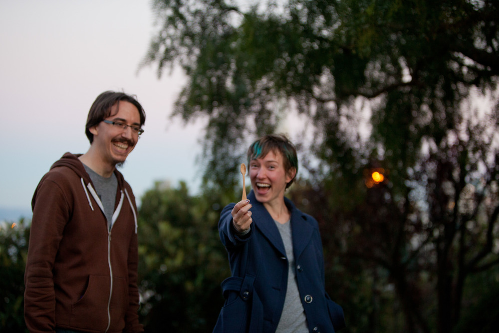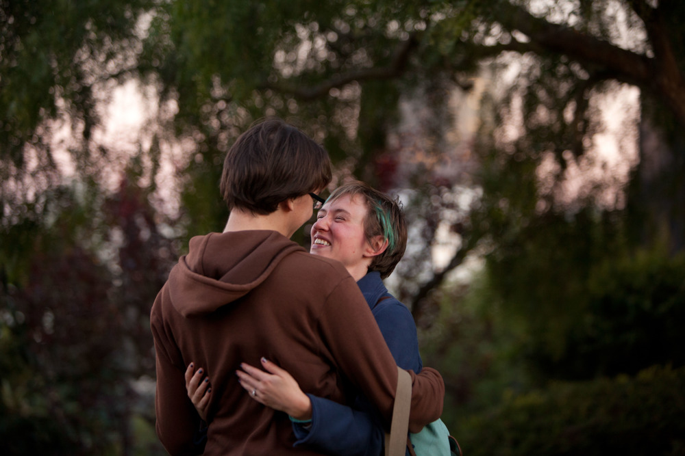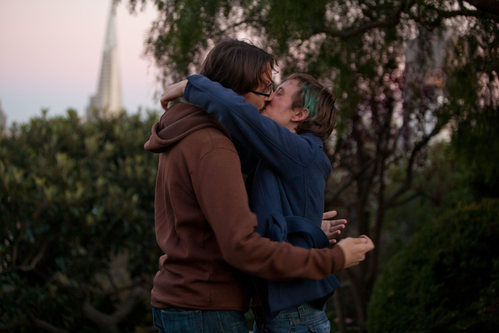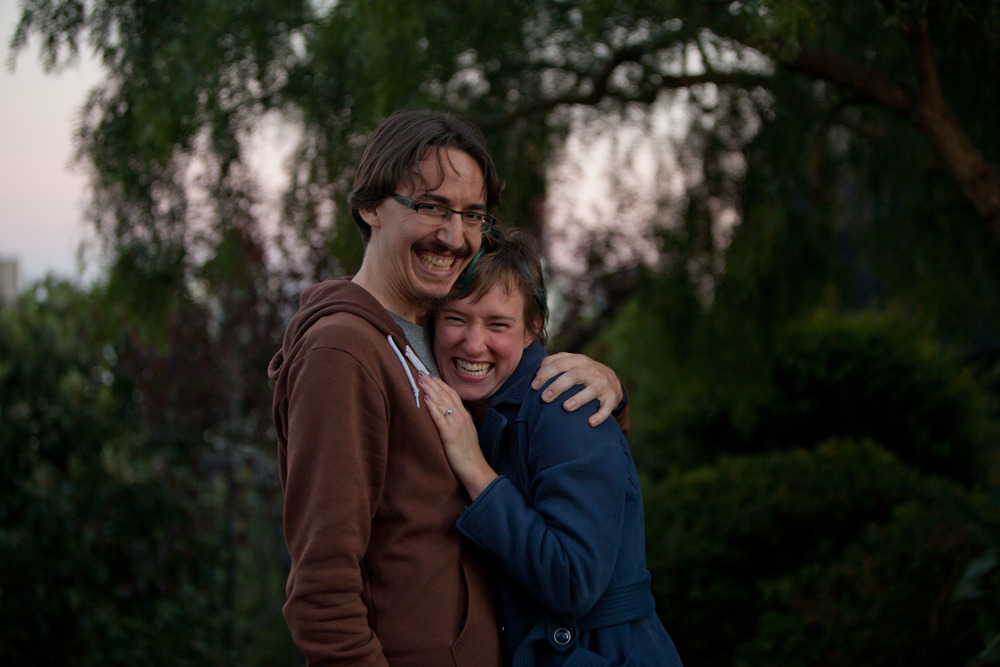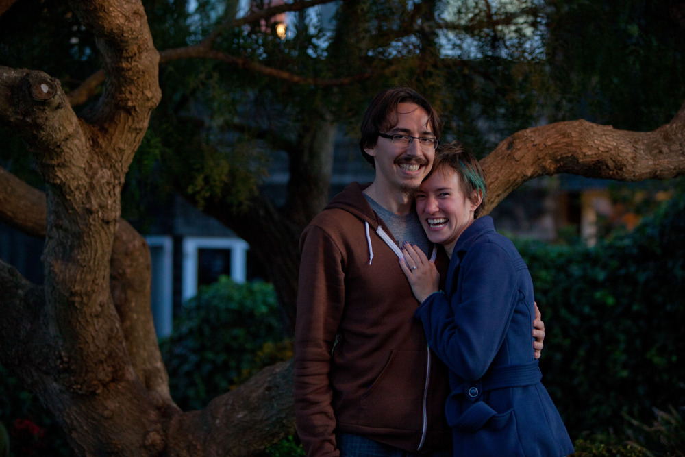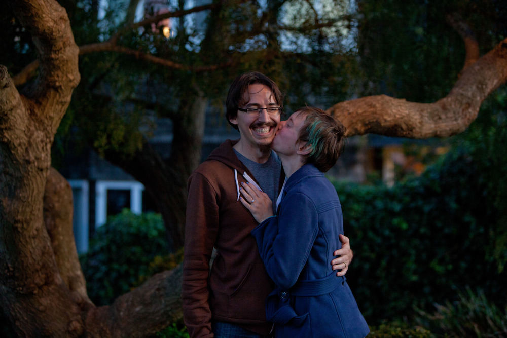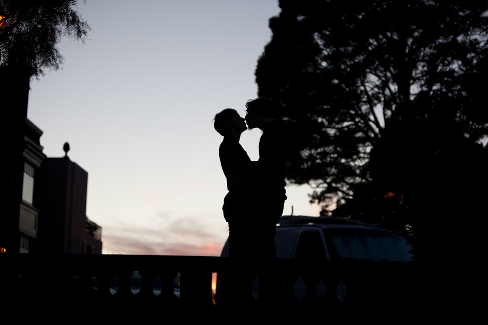 November 7, 2015 -- Maggie knows that the proposal is coming at some point in the next few weeks, but otherwise she’s in the dark about it all. We spend the day exploring SF, hiking around and finding cool spots, as we love to do. As the sun is setting, Maggie realizes that we are approaching our favorite hilltop park in SF, and she begins to suspect that something might be happening. As we stood in the park, gazing out over the bay, Isaac took Maggie’s hands, professed his love and joy in our relationship (admittedly, neither of us remember what he actually said. but it was definitely wonderful and romantic), and pulled a beautiful ring out of his pocket. After some joyful freaking out and taking pictures, Isaac revealed that not only had he made reservations at a fantastic restaurant, but he had sneakily stolen some of Maggie’s fancy clothes the previous week so that she would have a nice outfit to wear to dinner! Needless to say, Maggie was stunned and incredibly impressed, especially when she discovered that he has actually put together a very nice outfit. Dinner was wonderful, full of delicious food and a perfect way to end an incredible day.